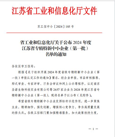 热烈祝贺我司获得江苏省专精特新称号!
